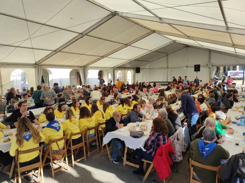 Paella jana arrakastatsua izan zen beste behin, «900 pertsona» bildu ziren plaza nagusian, Andoni Ollokiegik girotutako bazkarian. Iluntzean, helduen danborrada izan zen. Ostirala lan eguna izanik, arratsaldean nabaritu zen festa giroa. Goizean, Axariaren jaitsiera izan zen eta Aldaize herri aldizkariko lan taldeak bota zuen pregoia.