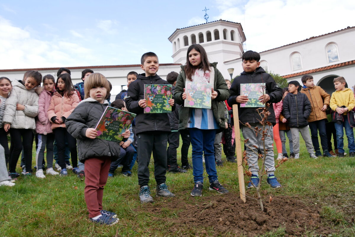 Aukeraketan parte hartu zuten neska-mutilen artean zozketa egin zuen udalak, eta lau ikasle aukeratu zituen, gaurko landaketan guztien ordezkari gisa parte hartzeko: HH3ko Ekain Benitez eta LH3ko Lola Conforti, Urko Rebollar eta Alias Adriel Gonzalez. Pagoa landatzeaz gain, Pirritx, Porrotx eta Marimotots pailazoen Ez gara jaitsiko! ipuina eta diskoa jaso dute opari.