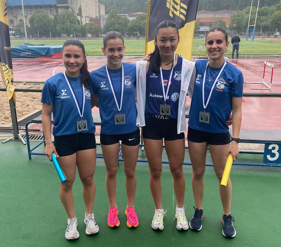 4×400 m. proban, 4’04”00 denbora egin dute, Ane Iparragirre segurarrak eta Abieyuwa Ehimwonzee, Elene Galparsoro eta Ainhoa Albisu ordiziarrek.