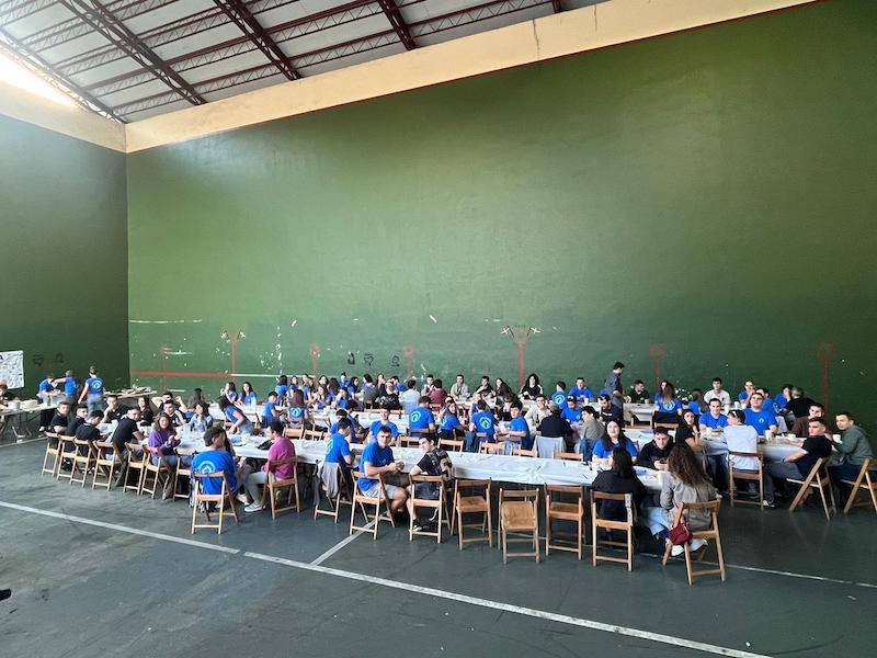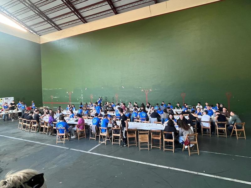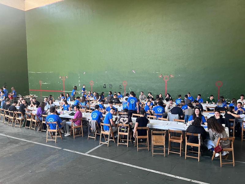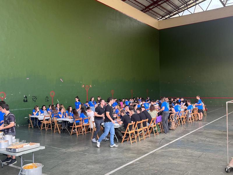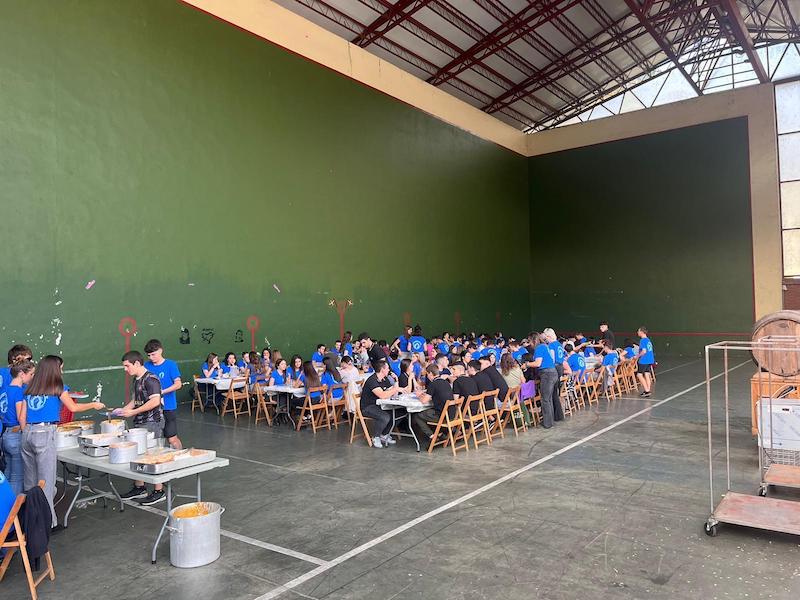 Gaur amaituko dira Legorretako 25. Gazte Festak. Eguerdiko herri bazkariak 120 gazte elkartu dira frontoian.
