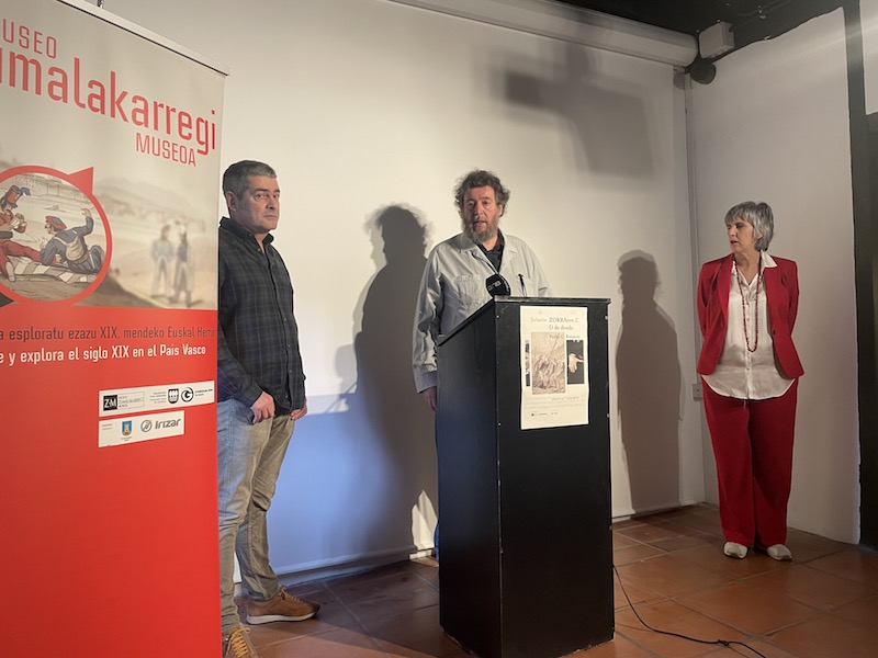 Mikel Alberdi, Ana Priede, Pero G. Romero eta Lourdes Azpiazu gaur goizeko aurkezpen ekitaldian. Josune Zarandona Pedro G. Romero artista andaluziarraren Zorraren Z erakusketaren inaugurazio ekitaldia egin ddute gaur goizean Ormaiztegiko Zumalakarregi museoan. Erakusketa hau museoak iaz martxan jarritako Artxibo praktikak proiektuaren lehendabiziko emaitza da. Proiektuaren bitartez, XIX. mendeko gertakariak arte plastikoen begiradatik berrinterpretatzea eta zabaltzea bilatzen da. Aldi baterako erakusketa gaurtik, ekainaren 1era egongo da ikusgai Zumalakarregin .
