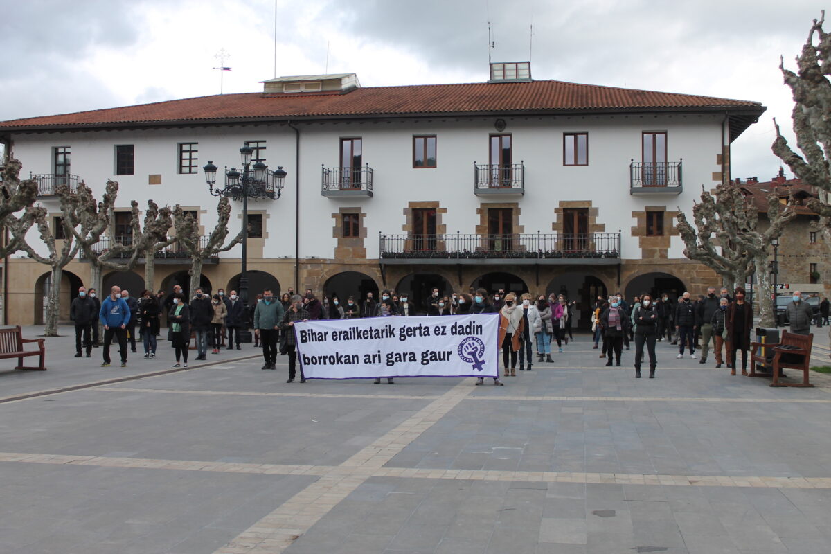 Lazkaoko plazan indarkeria matxista salatzeko elkarretaratze bat, 2021ean.Loinaz Agirre Ordiziako eta Lazkaoko talde feministek elkarretaratzeak egingo dituzte gaur iluntzean, 2025ean Euskal Herrian izan den hirugarren hilketa matxista salatzeko. Apirilaren 25ean Haron (Errioxa, Espainia) hilik aurkitu zuten emakume gasteiztarra.