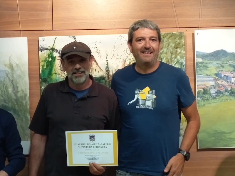 Aire zabaleko 5. pintura lehiaketako irabazleen taldeko argazkia Idiazabalen, larunbat arratsaldean.Udala Larunbat honetan jokatu da Idiazabalen Aire zabaleko 5. pintura lehiaketa. Helduen mailan, Carlos Espiga Alonso bilbotarraren Idiazabal lana izan da, epaimahaiaren iritziz, aurtengo onena. Beasaingo Iban Aranburu Elustondorentzat izan da bigarren saria Gurutzetako ermita lanarekin eta hirugarren egin du Portugaleteko Jose Luis Lopez Perezek Ruina entre verdes-ekin.