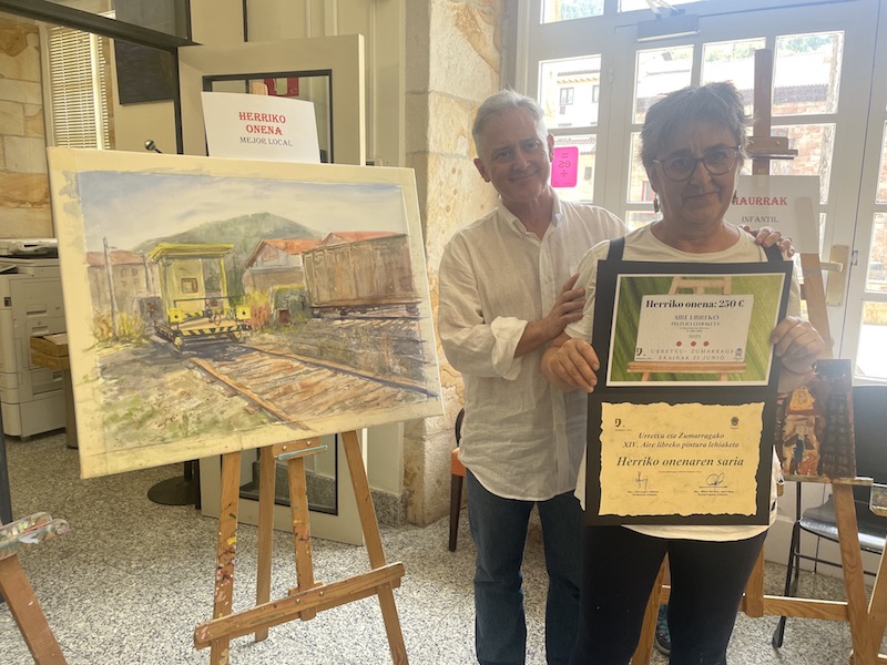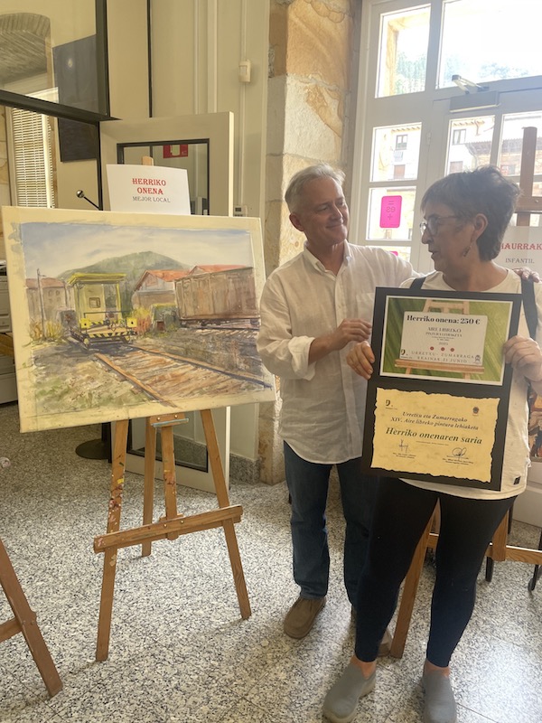 Guztien artean, Benigno Rodriguez asturiarrarentzat izan da lehendabiziko saria. 600 euroko txekea eta diploma jasi ditu Jon Luki Urretxuko alkatearen eskutik. Hunkituta eskerrak eman dizkie gerturatu diren guztiei, epaimahaiari, ikusleei eta gainontzeko margolariei. “Oso zaila izan da” zioen, eskertuta saria hartzerako unean.
