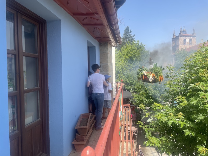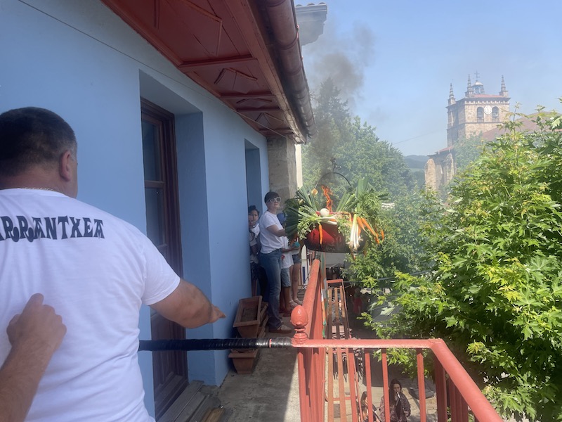 Elizako erlojuak 11:30ak jo dituen unean abiatu da Zopa Pertza kanpandorretik plazara. Une horretan gertatu da goizeko bitxikeria. Zopari darion lurruna irudikatzeko erabili ohi duten kartutxoak su hartu du eta pertza sutan zela iritsi da plazako balkoira. Tentsio unea bizi izan da une labur batez, baina sua segituan itzali dute eta segituan hartu dute pregoilariek hitza.