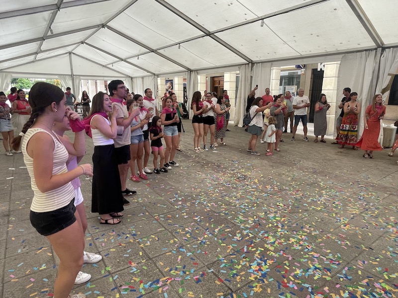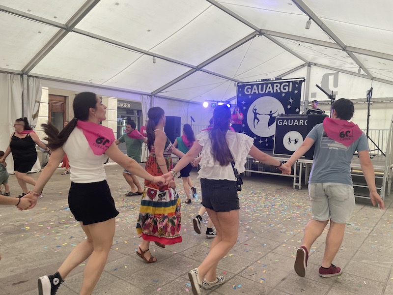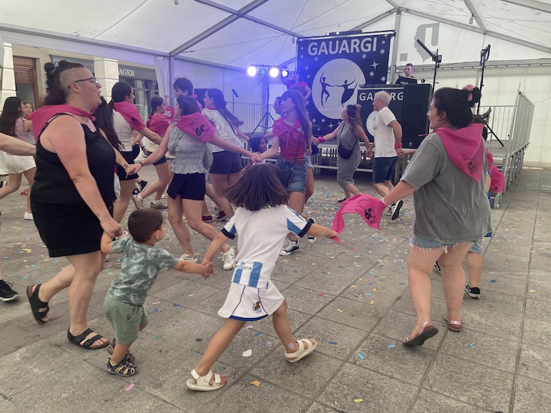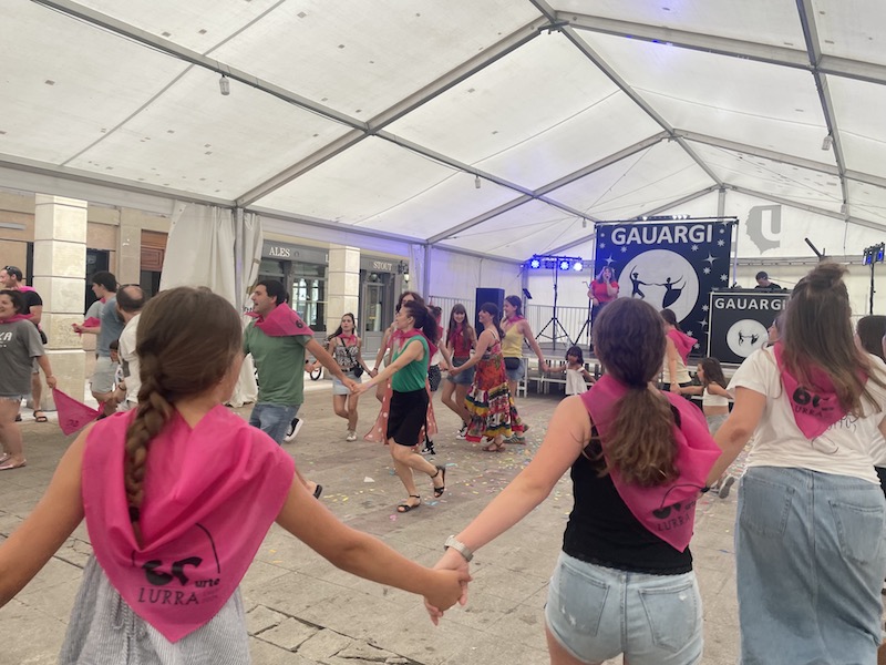 Ondoren, 80 bat lagun elkartu dira bazkaritara Gernikako Arbola plazan jarritako karpan. Taldeko dantzariak —helduak eta haurrak— eta gurasoen parte hartzearekin. Amaitzeko, erromeria egin dute bertan, dantzan eguneko ospakizunei amaiera emateko.