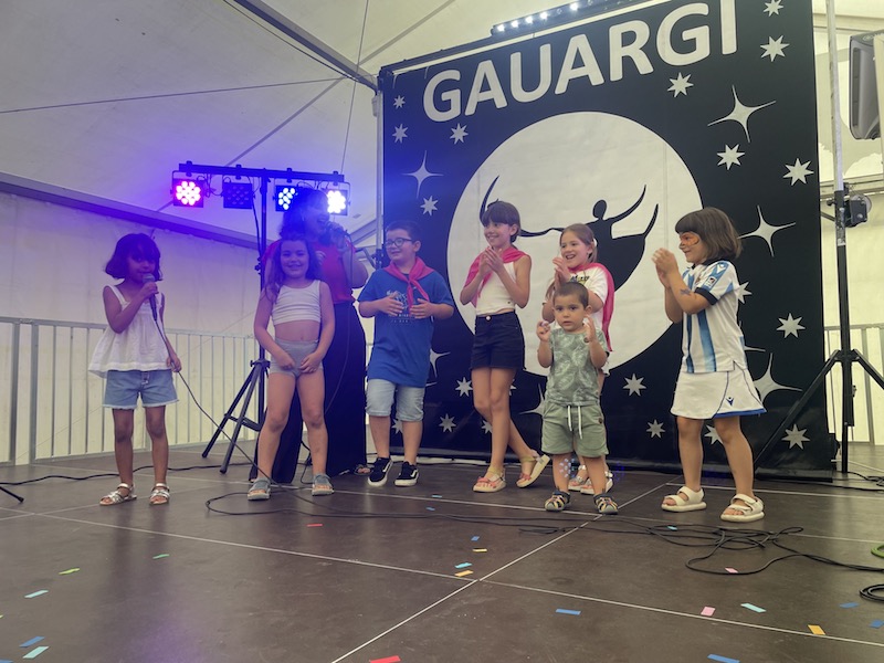 Goizean zehar, haurrentzako jolasak antolatu dituzte. 20 bat haurrek hartu dute ginkana moduko jolasean. Gernikako Arbola, Iparragirre eta Kalebarren Areizaga plazetan eta Lizeo aurrean proba ezberdinak gainditu behar izan dituzte: dantza, oskol biltzea eta galletak eskuak erabili gabe jaten.
