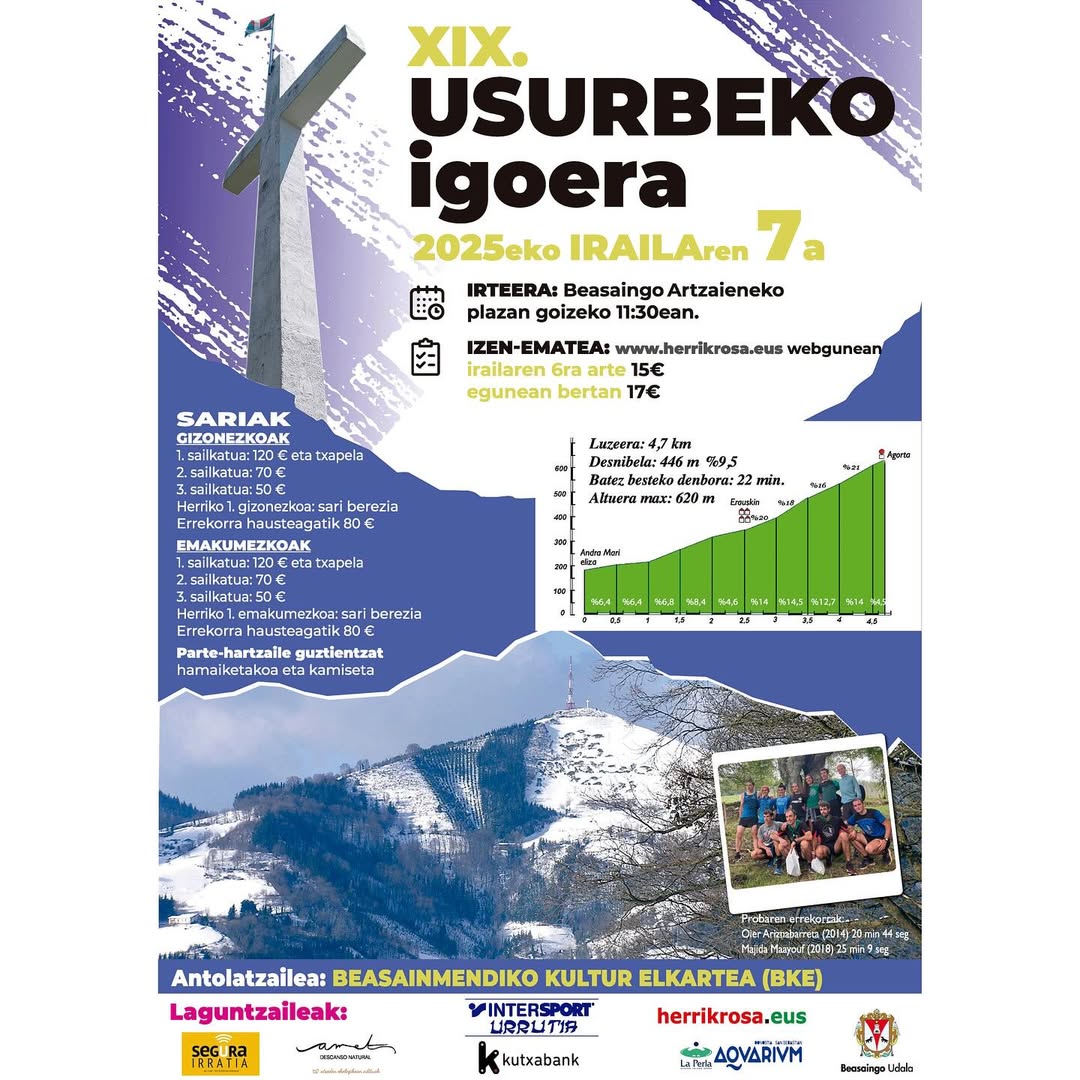 Usurbeko igoera irailaren 7an izango da.
