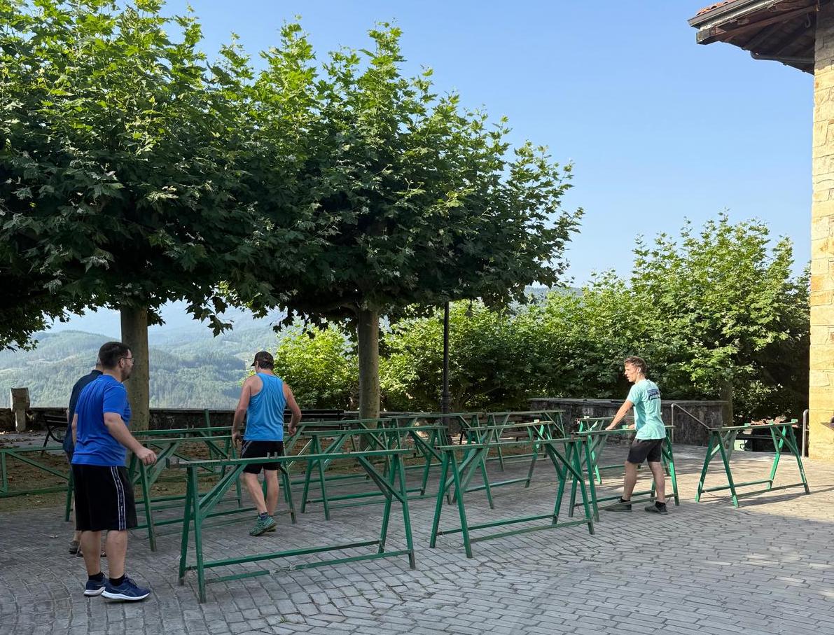 Igandeko San Lorentzo eguneko festa igarota, gabiriarrek zuzen-zuzenean dute begia jarrita bihar asteazkena hasiko diren Andre Mari eta San Roke festetan. Aurten, abuztuaren 13tik 17ra bitartean ospatuko dituzte, eta herri kaskoan hasita dauden jai horietarako prestaketak. Atzo goizean, auzolanean jardun zuten ekitaldietarako taulatua eta txosna muntatzen.