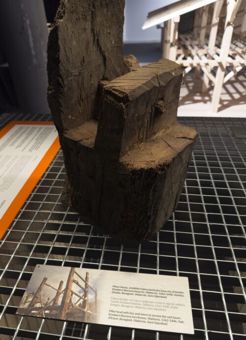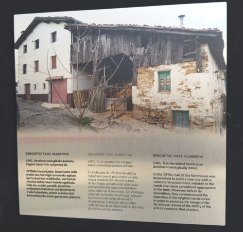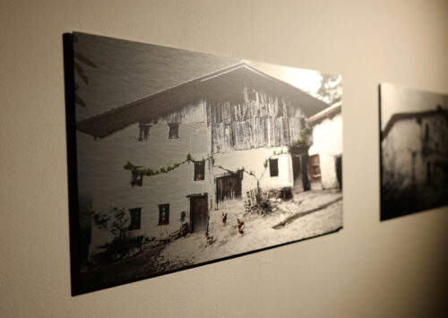 Argazkiak, maketak, informazio panelak eta baserrietako harri eta egur zati edo lagin zaharrak edo egituraren jatorrizko piezak dira erakusketaren funtsa.