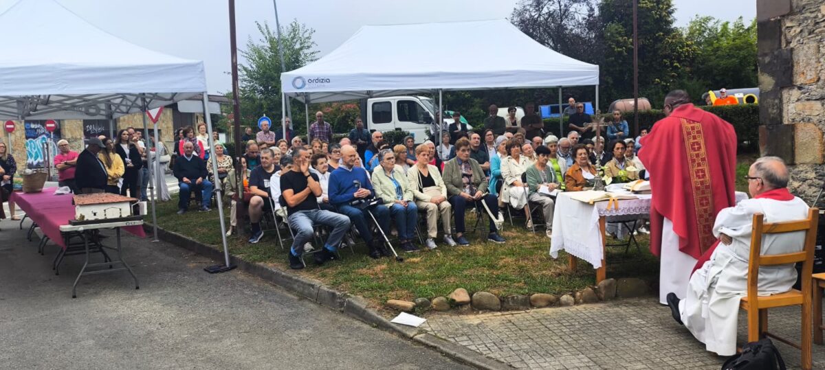 Beste urtebete gehiagoz, San Bartolome egunean (abuztuaren 24an) izen bereko ermitan elkartu ziren atzo hainbat eta hainbat ordiziar. Ermitaren kanpoko aldean egin zuten meza, “barruan dena hankaz gora dagoelako”, dio Pello Otegi auzotarrak.