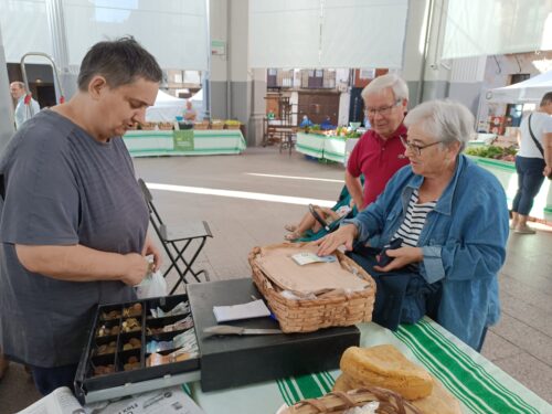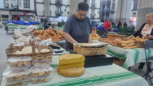 Ia parean dagoen postuan, berriz, udare tomatez betetako kaxen salmenta izan da arreta deitu duena. Javier Lacalleren postua zen, eta tomatea kontserban egiteko garaia denez, kaxakadak ari da saltzen joan den astetik.