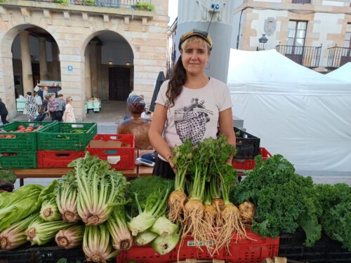 Barazkien eskaintzan era hasi da antzematen udazkenaren gertutasuna. Aurreko astean lehen kuiak iritsi ziren, eta gaur udazkeneko produktuz beteta zuen postua Bidania-Goiatzen Sustrai Askeak izenarekin ekoizten duen Natalia Magallanesek. Txikoria (1,30 unitatea), mihilu erraboila (1,40 euro), eskarola (1,5 euro), eta apio erraboila (2,5 euro) aurkeztu ditu.