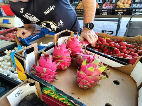 Zuhaiztiko salmenta puntura ere itzuli da normaltasuna, eta oporrek utzitako hutsune guztiak beteta agertu dira gaur. Fruta sailtzaileen artean, Calandako melokotoia (3,95 eta 5,9 artean kiloa), Malagan ekoitzitako mangoa (2,5 eta 4,95 euro artean unitatea), eta garnatxa motako mahats beltza (2,5 eta 3,95 euro artean kiloa) izan dira berritasunak. Bitxikeria gisa, pitaya aipatu behar da, herensugearen fruta izenarekin ere ezagutzen dena. Kanpotik arrosa kolore bizikoa, arreta deitu du Rueda familiaren postuan, kiloa 7,9 euroan.