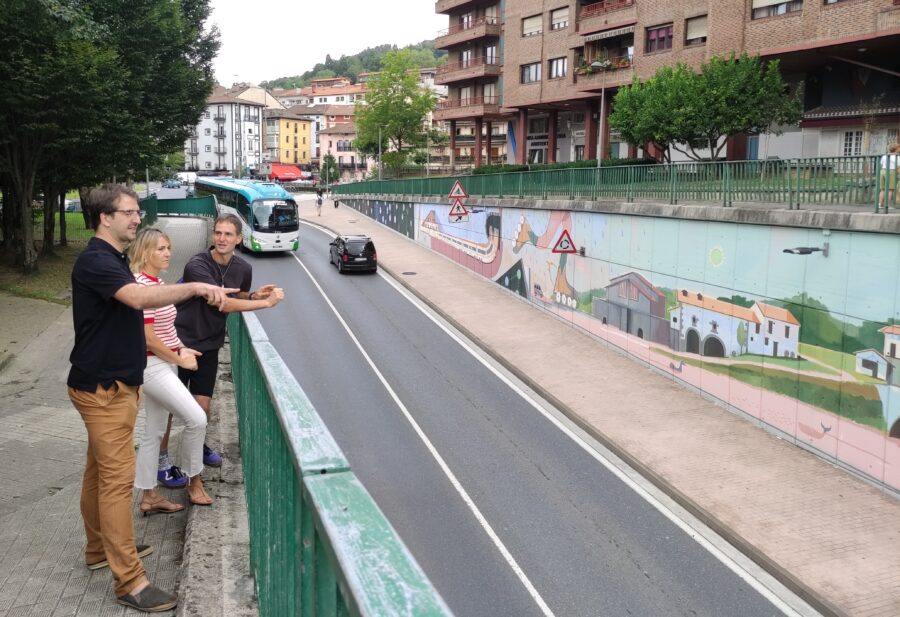 Xabier Anuntzibai artista beasaindarrak mural erraldoia margotu du Beasaingo Senpere kaletik Lazkaora doan bidean.