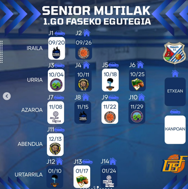 Ordiziako Senior mutilak, aurreko denboraldian finalerdietara iritsi ondoren, “aurtengoan ere Gipuzkoako lehen mailan lehiatuko dira”. Irailaren 20an hasiko dute liga Tolosan, Takeren aurka. Lehenengo faseko egutegia ondorengoa da.