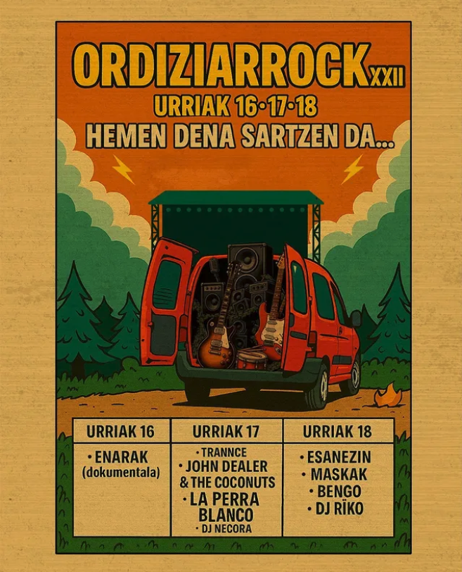 Urriaren 17an Trannce, John Dealer&The Coconuts, La Perra Blanco eta Dj Necora izango dira Ordizian. Urriaren 18an, berriz, Esanezin, Maskak, Bengo eta Dj Riko.