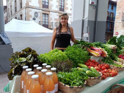 Sustrai Askeak postuan, berriz, errukula eta mizuna edo ziape japoniarra aurkeztu ditu Natalia Magallanesek; 150 gramo 1,5 euroan zituen salgai.