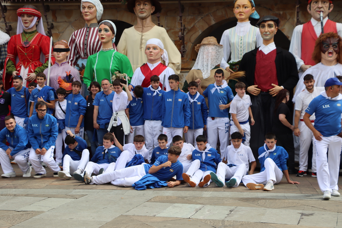 Herriguneko kaleak zeharkatu ondoren, Euskal Herria plazan amaitu dituzte haien saioak. Arratsaldean berriz aterako dira kalera erraldoiak, eta Kataluniako castellers-ak ez ezik, Euskal Herriko castellers-ak ere ariko dira.