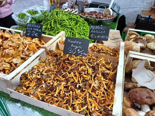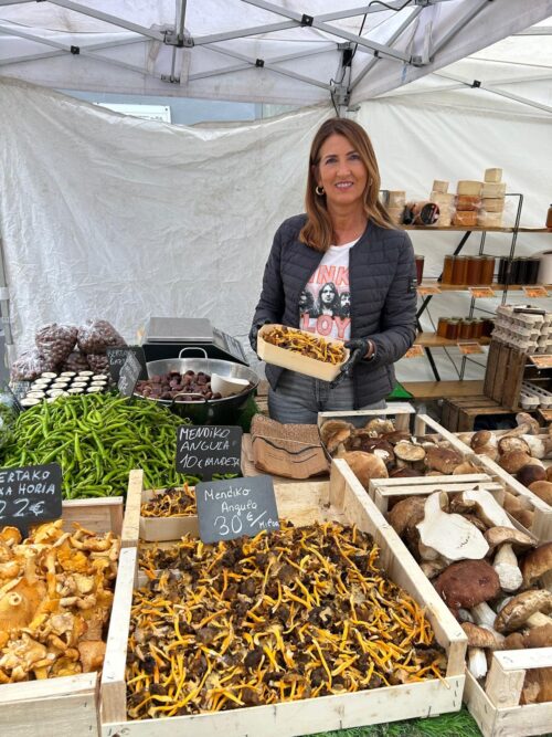 Perretxikoen atalean ere izan dira berritasunak. Mikel Lasaren eta Miren Pagolaren postuan urteko lehen mendiko angulak izan dituzte salgai, hamar kilo, 32 euroan bakoitza.