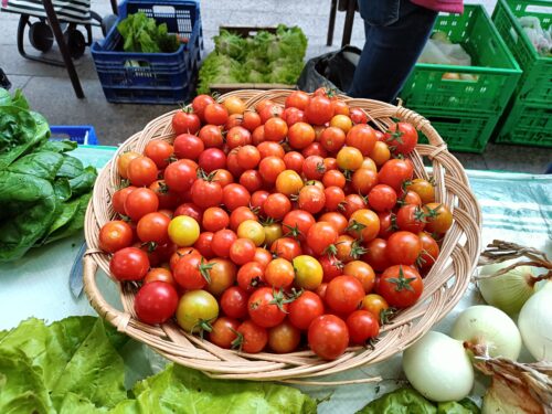 Plaza Nagusiko beste postuetan ere agerian geratu da udazkenaren gertutasuna, babarrun, kuia, hur eta arto opila bezalako produktuekin, baina uda oraindik ez dela amaitu erakusteko, piperrak, kuiatxoak, lekak edo tomateak izan dituzte. Azken horien artean, denboraldia amaitzear denean iritsi dira gerezi edo cherry motakoak. Zurutuza ahizpek zituzten, kiloa 8 euroan.