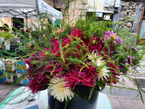 Lore moztuetan ere izan da aukera gaurko ferian. Zurutuza ahizpek daliak, margaritak, rudbeckiak eta udazkeneko anemonak eskaini dituzte sortak egiteko, sorta 5 euroan.