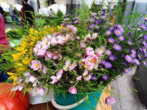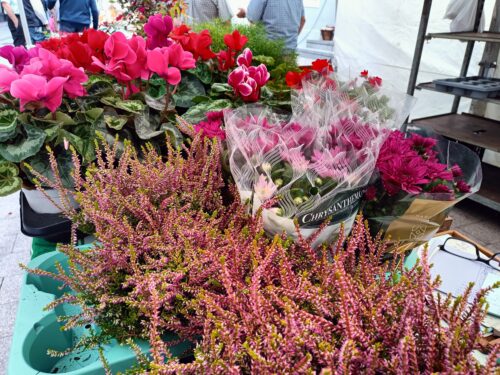 Loreetan oso nabarmen geratu da urtaro aldaketa datorrela. Iñaki Azanzaren postuak kolore biziz beteta jarraitzen du, baina kolore hori neguko loreena da dagoeneko. Ziklamena (4,5 eta 7 euro artean), txilarra (8,5 euro), pentsamendua (1,5 euro), krisantemoa (5,5 euro) eta azalea (9,5) hasi da saltzen, eta datozen asteetan hotzari aurre egiteko prestatuta dauden landare eta lore gehiago izango dituela aurreratu du.