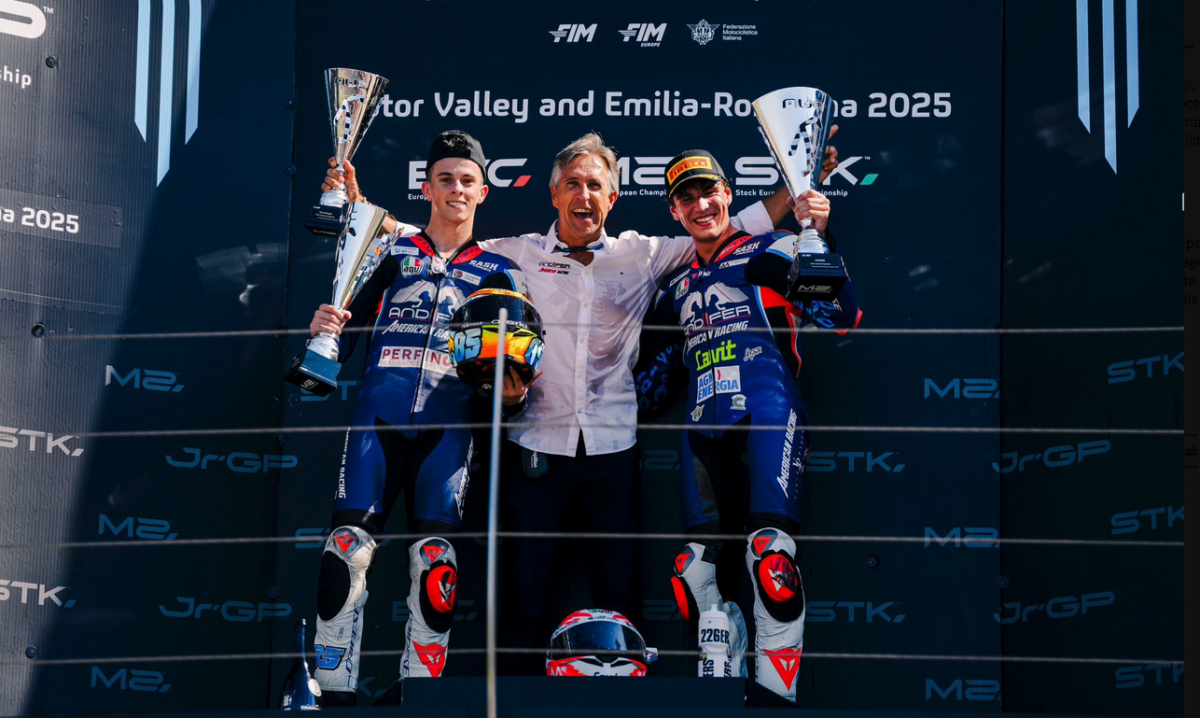 Zurutuza, Ricard Jove managerrarekin, eta taldekide duen Alberto Surra lasterketako irabazlearekin. Xabi Zurutuza Legazpiko pilotuak podiuma lortu du berriz ere Moto2ko Europako txapelketan, atzo bigarren eginda Misanoko zirkuituan (Italia). Podiumaren gailurrean Andifer-American Racing taldean kide duen Alberto Surra italiarra kokatu zen, eta hirugarren postuan, Milan Pawelec poloniarra.