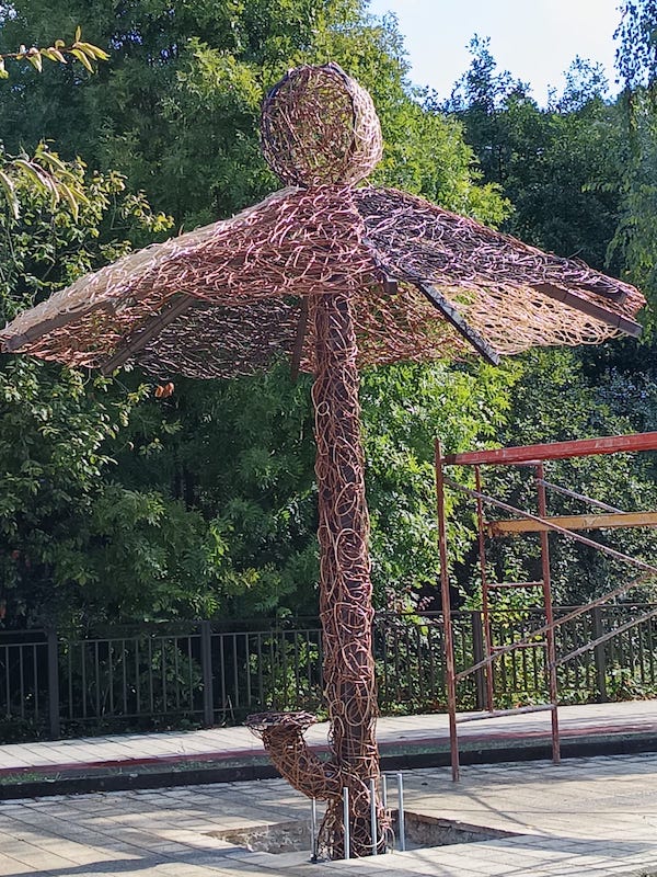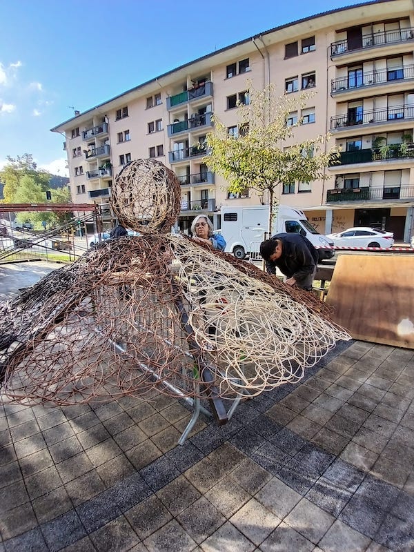 Itziar De La Granja artista gaur goizean Ormazitegin, 'Aterki inklusiboa'ren muntaketan.Arteria Aterki inklusiboa eskulturaren muntaketa lanak egin dituzte gaur goizean Ormaiztegin. Zegaman bizi den Itziar de la Granja artistaren proiektua da Aterki inklusiboa. 2022An Arteria Goierriko sormen lantegiaren diru laguntza jaso zuen proiektuak. «Harreman sozialak saretu eta bazterrean daudenentzako nolabaiteko aterki bat sortzea da helburua, bertan aterpe bat izan dezaten, transmisio moduetan sakondu eta elkarri begiratzeko beste modu bat bilatzeko», azaldu zuen lanari buruz De La Granjak.