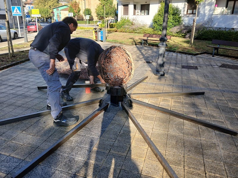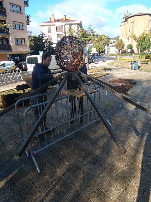 Ormaiztegiko Berjaldegi plazan kokatu dute gaur goizean. Ostiralean egingo dute aurkezpen ekitaldia, 18:00etatik aurrera.