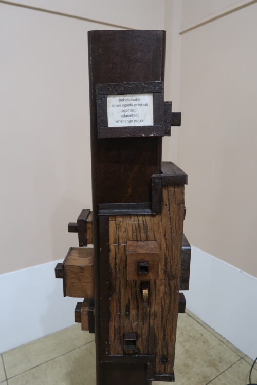 Kultur Etxeko erakusketa aretoa tamaina handiko eskultura abstraktuz beteta dago. Bixen Uli zumarragarraren Puja… hutsetik bizira! bilduma da, eta urriaren 10era arte dago ikusgai, astelehenetik ostiralera, 17:00etatik 20:00etara.