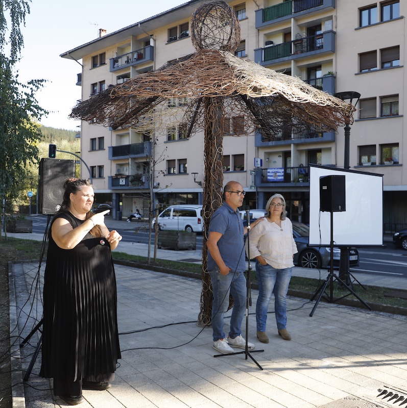 Jende ugari bildu da Itziar De La Granjaren 'Aterki inklusiboa' eskulturaren aurkezpen ekitaldira.
