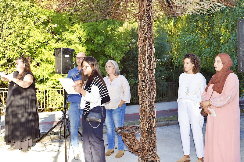 Jende ugari bildu da Itziar De La Granjaren 'Aterki inklusiboa' eskulturaren aurkezpen ekitaldira.