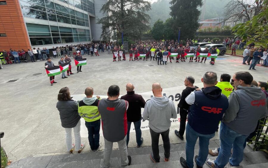 'Langileok beti Palestinarekin!' lelopean elkarretaratzea egin dute lantegian, Enpresa Batzordeak deituta.