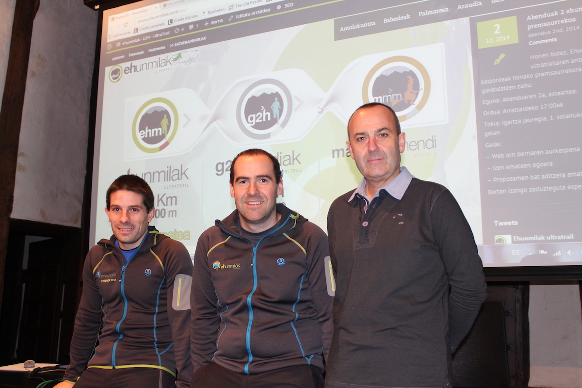 Alberto Mella, Andoni Zubeldia eta Niko Osinalde, Marimurumendi Ehunmilak proiektura gehitu zela berri emateko prentsaurrekoan.Ane Arrieta