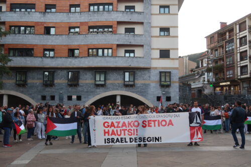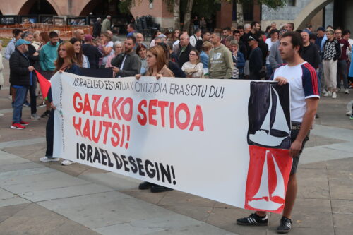 “Atzo gaueko 21:00ak aldera, Israelgo Armadak Global Sumud Flotillaren aurkako erasoa abiatu zuen. Erasoan, Gazako setioa apurtu eta Zerrendara laguntza humanitarioa eramatea helburu zuten ekintzaileak blokeatu, abordatu eta atxilotu egin zituen estatu sionistak. Une honetan, 400 ekintzaile baino gehiago daude atxilotuta, tartean hainbat euskaldun ere.