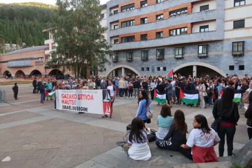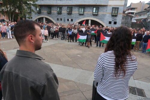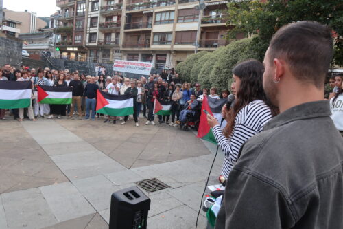 Legazpiarrak Palestinako herriari elkartasuna adierazteko eta Israelen genozidioa salatzeko elkartu ziren atzo bigarren aldiz, Euskal Herria plazan. Goizean Ikasle Abertzaleek egindako deialdiari erantzunez egin zuten elkarretaratzea, eta arratsaldean, palestinarrak laguntzera zihoan Global Sumud Flotilla Israelek blokeatu izana salatzeko elkartu ziren, batez ere.