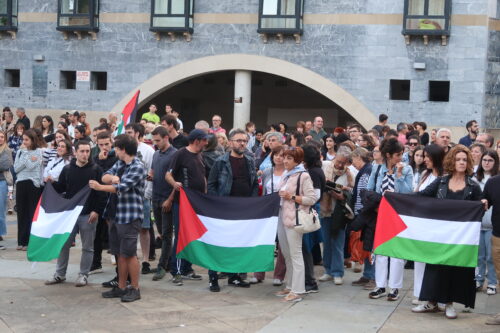 Hurrengo egunetan egongo diren protesta eta ekintzak babesteko dei egiten dugu eta urriaren 4an Iruñeko kaleak beteko ditugu, palestinar erresistentziaren alde, Israelgo estatuaren desegitearen alde eta konplize guztien aurka”.