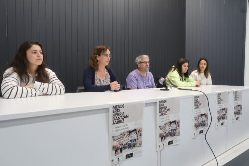 Sustraiak dantza taldeak aurrera jarraitzen du bere sorreraren 50. urteurrena ospatzen, eta larunbat honetan Urbeltz pilotalekuan eskainiko duen Mende erdia herria dantzan jarriz ikuskizuna aurkeztu du gaur eguerdian. Jon Dorronsoro taldeko ordezkaria arduratu da aurkezpenaz, Maider Galindo, Ainhoa Irazustabarrena eta Naroa Aramendi dantzariek lagunduta. Miryam Galilea kultura zinegotzia ere ondoan izan dute.