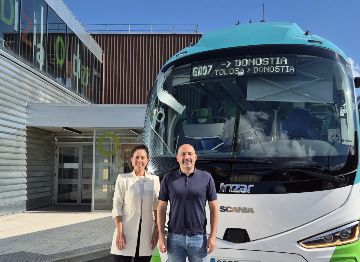 Azahara Dominguez Diputatua eta Adur Ezenarro Ordiziako Alkatea.GFA. Lurraldebusen GO07 autobus linearen ibilbidea hobetzeko helburuarekin, urriaren 20tik aurrera, Ordizian geraleku berria izango du, San Bartolomeko aparkalekuan, Eroskiren ondoan egokitutako geltoki berria.