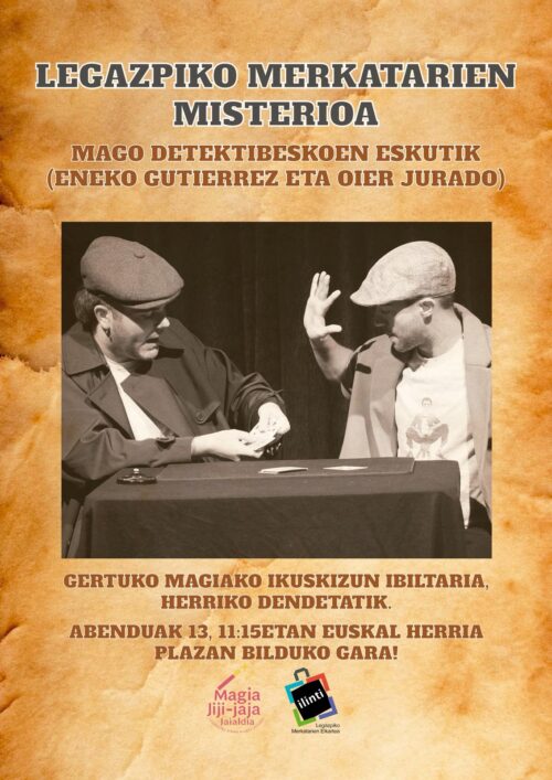 Ilintiren laguntzarekin, Legazpiko merkatarien misterioa mago detektibeskoen eskutik ikuskizuna prestatu du. “Oier Jurado eta ni gara mago detektibesko horiek, eta ikuskizun ibiltaria egingo dugu, dendaz denda, gertuko magia”. Larunbat goizean izango da, abenduaren 13an.