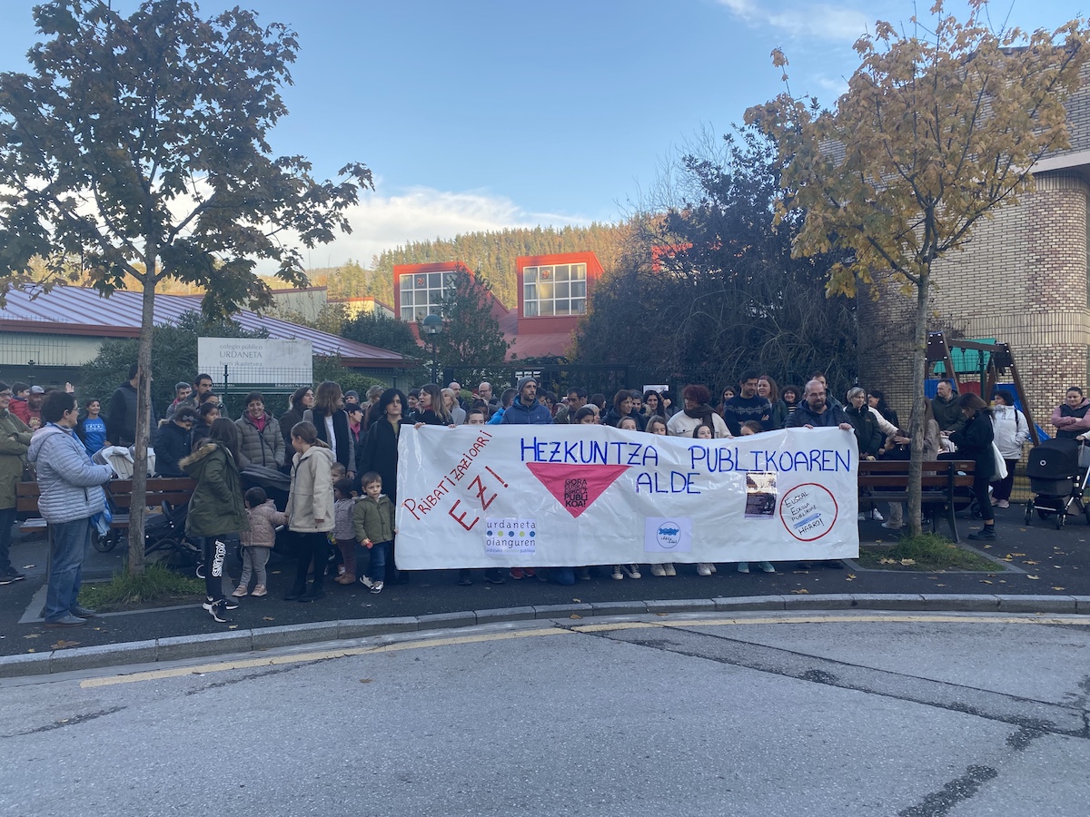 Azaroaren 30ean Urdaneta eskola publikoaren atarian egindako elkarretaratzea. Argazkia: Laida Goiburu Euskal Eskola Publikoaz Harro Topaguneak topaketa egingo du larunbatean Ordizian, Euskal Eskola Publikoaz Harro, segregazioaren kontra lelopean. Urdaneta eskolako Lehen hezkuntzako eraikinean (Intxausti plaza, 6) elkartuko dira, 10:00etan.