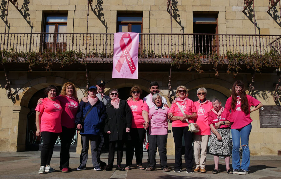 Katxalin elkarteko kideekin batera, begizta arrosa zintzilikatu dute udaletxeko balkoian. Biharko Kulturen Arteko Egunean postua izango dute Katxalin elkarteko kideek.