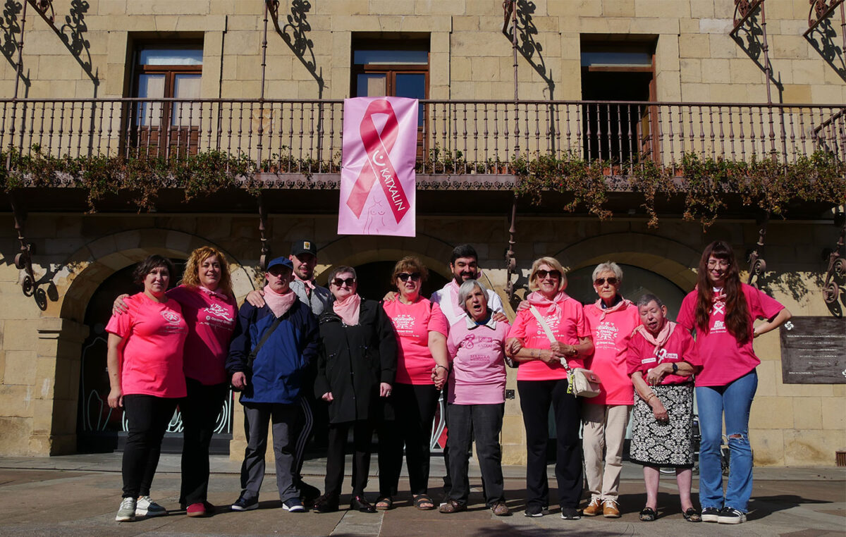 Udaletxeko balkoian zintzilikatuta dago dagoeneko egun horren ikur bihurtu den begizta arrosa, eta gaurtik igandera bitartean fatxada kolore arrosaz argiztatuko du,“gizarte osoak gaixotasun horrekin duen konpromisoa gogorarazteko”. Gainera, atzoko LegazTipi-Tapa paseoan Katxalineko kide batzuk parte hartu zuten, sentsibilizazio helburuarekin.