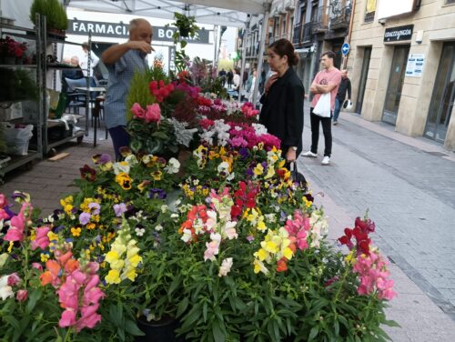 Eztia eta loreak izan dira eguneko protagonista nagusiak Plaza Nagusian, eta Zuhaiztian, laranjak, horiek ere hasi dutelako denboraldi berria,