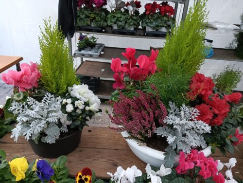 Krisantemoekin egindako zentroak ere baditu aukeran, 25 eta 38 euro artean, baita landare solteak ere, lore txikiko krisantemoak (6,5 euro) edo arrosa txikiak (8,5 euro) bezala.