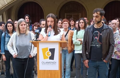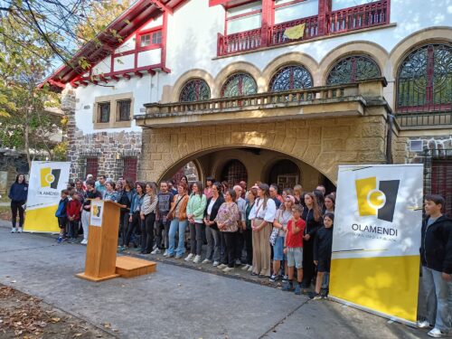 Bi ikastetxeak Olamendi izenpean babestuta, «euskal hezkuntza publikoaren aldeko apustu sendoa» egin dute. Bestetik, «komunitatearen aniztasuna eta aberastasuna» aldarrikatu dute, «pertsona guztientzat ateak irekiz, pertsona bakoitzaren aniztasuna errespetatuz, eta guztion gaitasunak garatzeko espazioak eskainiz». Eta euskara dute «ardatz», izan ere, «euskarak kohesionatzen du gure komunitatea, eta euskarak eskaintzen dio gure herriari ikuskera eta saretze aberatsa, bizikidetza demokratikorako ezinbestekoa». Azkenik, «herrian errotuta» dagoen proiektua abiarazi dute, «bertako eragileekin elkarlanean jarraituko dugu, hezkuntza komunitate zabala josiz, eta herriari gure ekarpena eginez: elkar zainduz».
