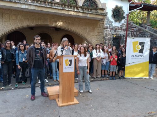 Gaur arratsaldean aurkeztu dute Olamendi Euskal Eskola Publikoa Agirre-etxeberri parkean egindako ekitaldi xume batean. Miren Zeberio irakaslea, Mikel Uranga guraso elkarteko kidea eta Nora Gutierrez ikaslea arduratu dira etapa berri honi buruzko azalpenak emateaz.