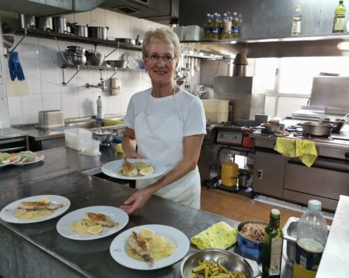 Sukaldean pasatako orduak ez ditu kontatu: «Askotan konturatu ere ez, lan asko baitzegoen. Eguna hasten zenuen eta ohartu gabe ilundu egiten zuen».