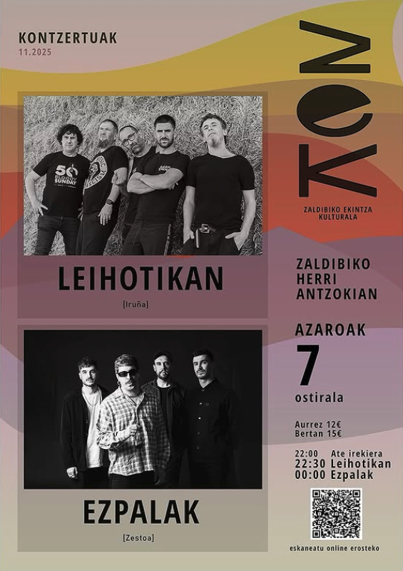Joan den igandean Punpairez late night ikuskizuna antolatu ondoren, gaurko bi talderen kontzertua antolatu du ZEK Zaldibiako Ekintza Kulturala taldeak.